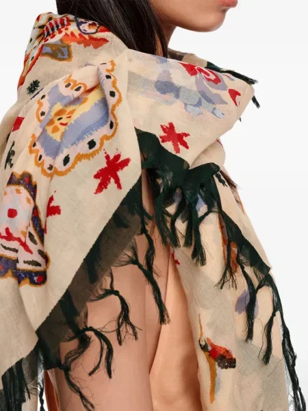 Fular cu franjuri cu model floral