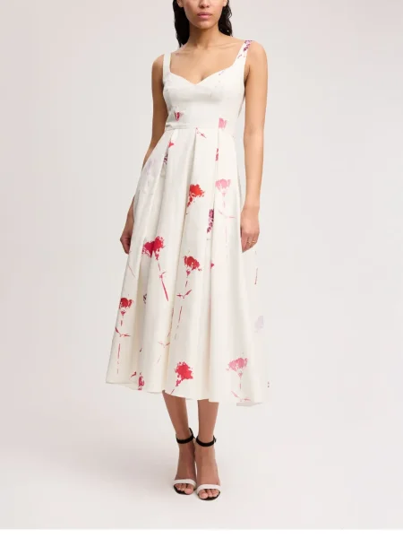 Alejandra Alonso Rojas Rochie midi cu model floral cu imagine până la genunchi