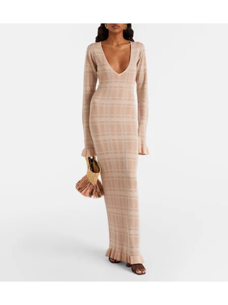 Rochie maxi în carouri tricotate cu volane
