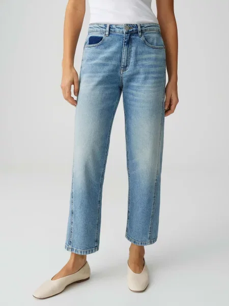 Materialul contează la fel de mult. Denim-ul din bumbac cu 1-2% elastan păstrează structura, dar nu strânge la genunchi atunci când croiala este conică. În sezonul rece, merg țesăturile mai dense. Primăvara și vara, se simt mai bine variantele ușoare sau blugi conici crop damă, care lasă glezna la vedere.