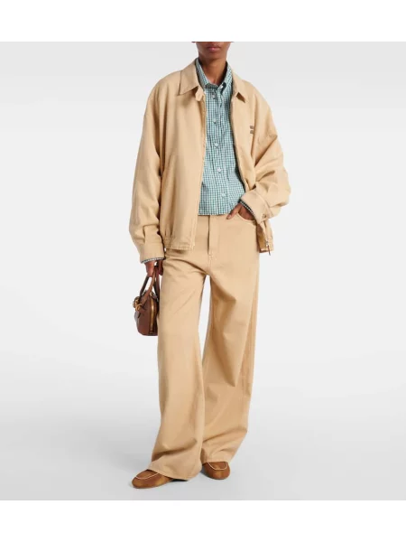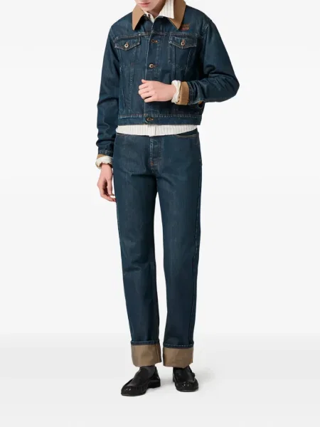 Detaliile contează: de la efectele de wash şi tăieturi asimetrice la broderii şi aplicaţii, fiecare element construieşte o semnătură recognoscibilă; pentru o variantă clasică, Jeans dama Miu Miu combină tehnici couture cu accente streetwear. Preț mediu estimat: 6 127 Lei.