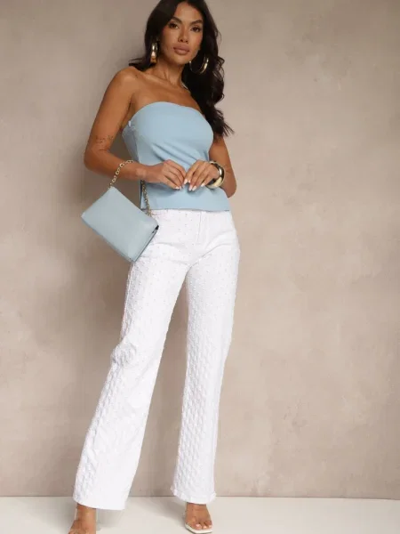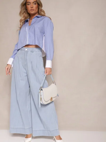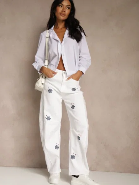 Other Blugi largi bleu deschis cu talie normală și broderii decorative cu steluțe Arialah