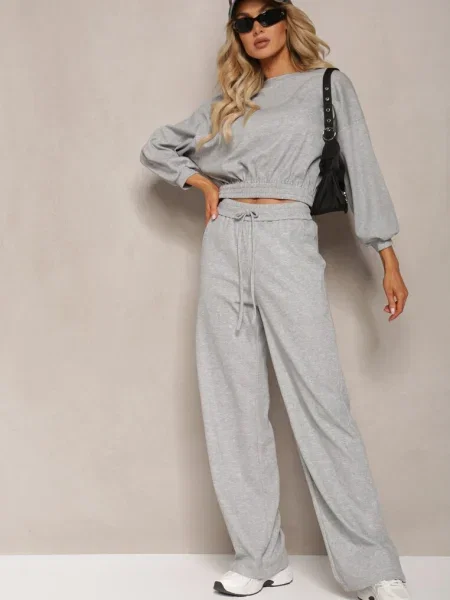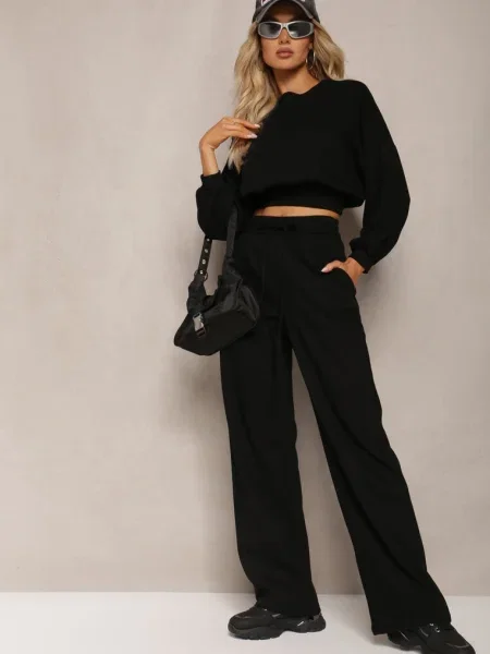 Other Compleu din Bluză Scurtă cu și Pantaloni Largi cu Șnur în Talie Rionnea