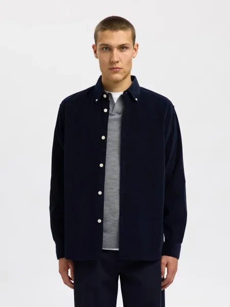 Samsøe Samsøe Samsoe Samsoe camasa din velur SALIAM marin cu guler clasic regular