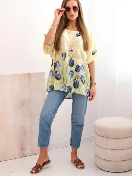 Cămașă Kesi Włoski cu model floral galben