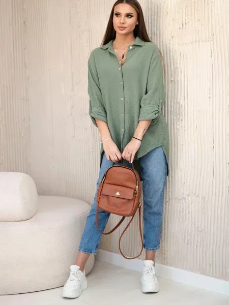 Cămașă Kesi Włoski din muselină kaki