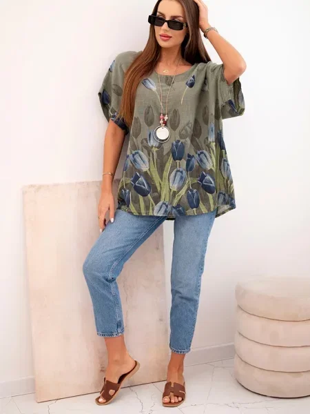 Cămașă Kesi Włoski cu model floral kaki