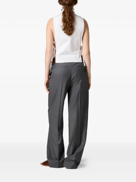 Modele cămăși damă Miu Miu explorează contrastul dintre minimal și ornament, cu detalii care recurg la volane, pliuri sau broderii discrete, menținând totodată linii care favorizează versatilitatea. Siluetele variază de la supradimensionat la croieli ajustate, astfel încât fiecare piesă comunică un direcționare stilistică clară fără artificii inutile.
