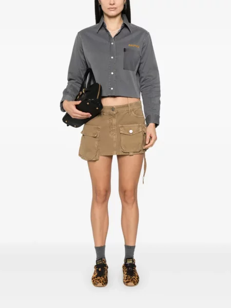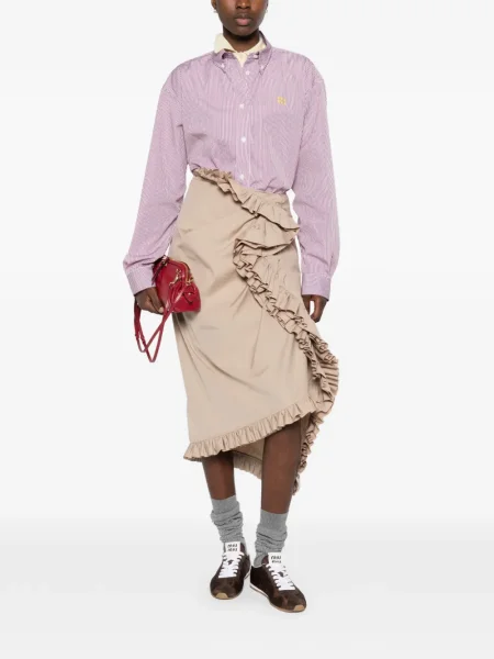 Cămăși dama Miu Miu ies imediat în evidență printr-un vocabular vizual jucăuș și rafinat, reinterpretând linearitatea cămășii clasice cu proporții surprinzătoare și accente feminine. În secțiunea dedicată puteți naviga între propuneri prin colecția de îmbrăcăminte Miu Miu disponibilă online.