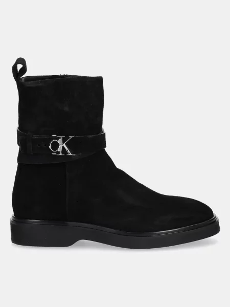 Calvin Klein Cizme din piele întoarsă ANKLE BOOT W/ METAL LOGO SUE