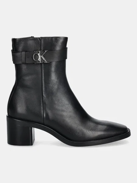 Calvin Klein Cizme de piele BLOCK HEEL BOOT W/ METAL LOGO