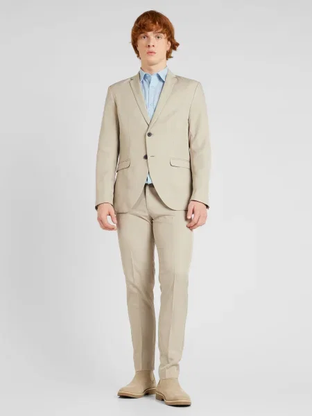 Un costum bej bine purtat stă în combinații simple
