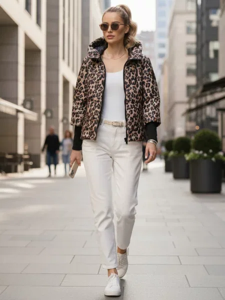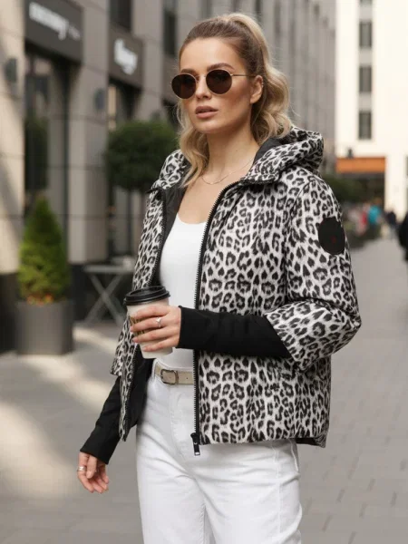 Geacă cu model leopard matlasată