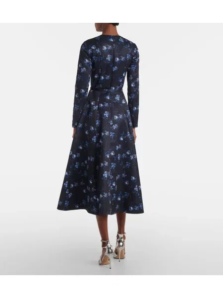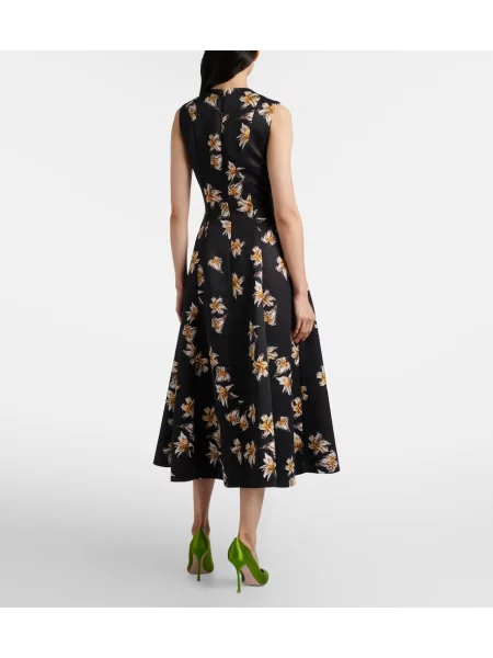 Emilia Wickstead Rochie midi din satin cu model floral până la genunchi