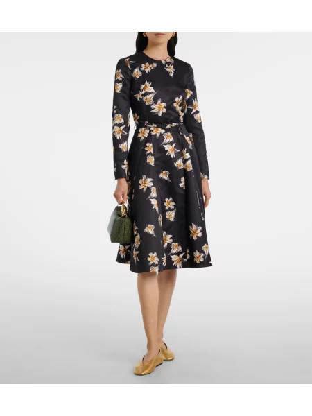 Emilia Wickstead Rochie midi din satin cu model floral până la genunchi