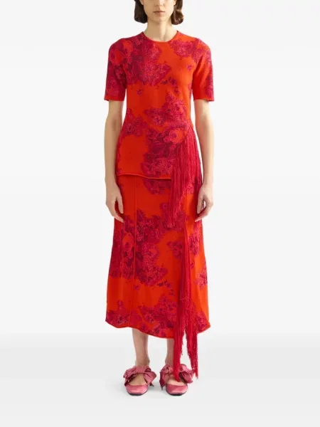 Fustă midi cu franjuri cu model floral