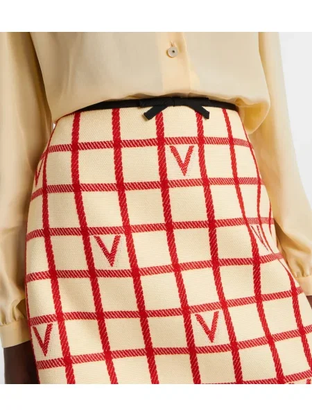 Emilia Wickstead Fustă midi de lână în carouri până la genunchi