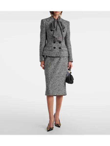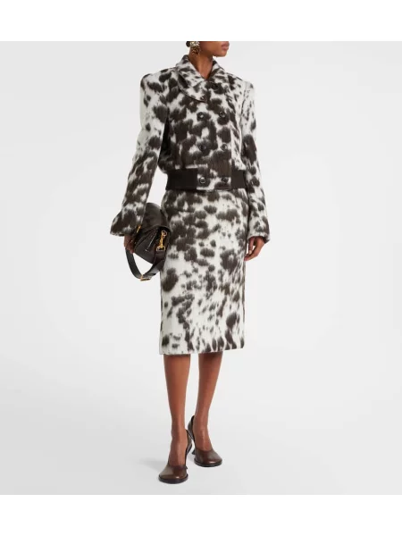 Dries Van Noten Fustă midi de lână cu imagine până la genunchi