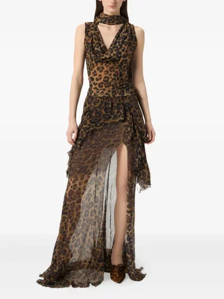 Blumarine Fusta maxi de mătase cu imagine cu model leopard