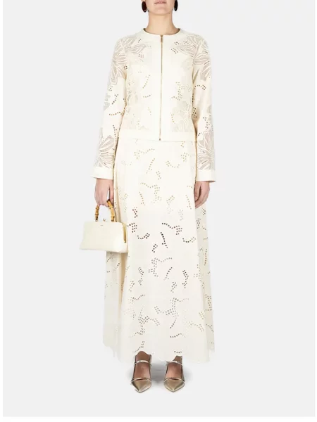 Elie Saab Fustă midi cu broderie până la genunchi din organza