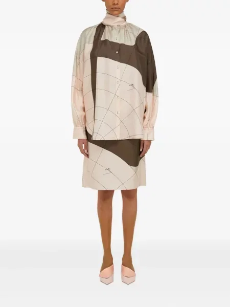 Ferragamo Fustă midi de mătase cu imagine până la genunchi