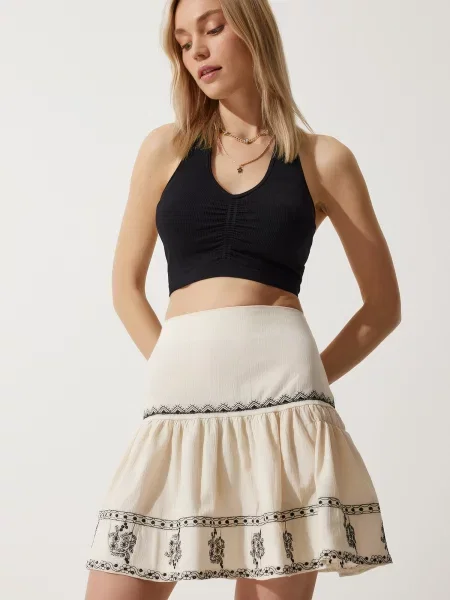 Happiness İstanbul Happiness İstanbul Fustă crem verde / roz închis