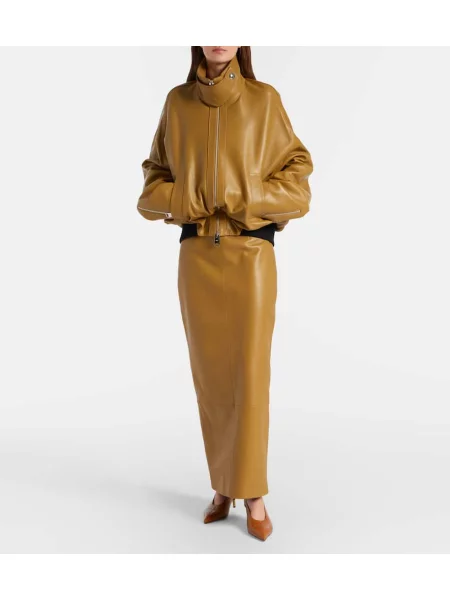 Khaite Fustă midi din piele de căprioară până la genunchi