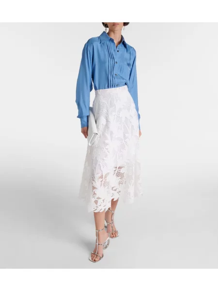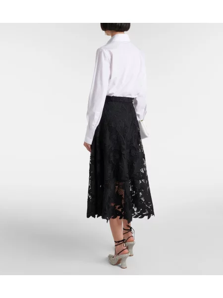 Oscar De La Renta Fustă midi cu model floral din dantelă până la genunchi