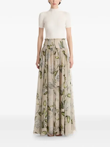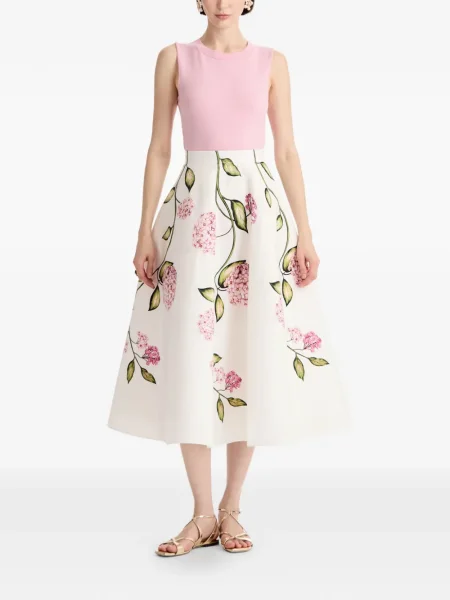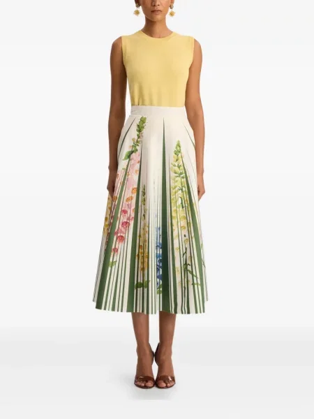 Oscar De La Renta Fusta plisata cu model floral cu imagine plisată