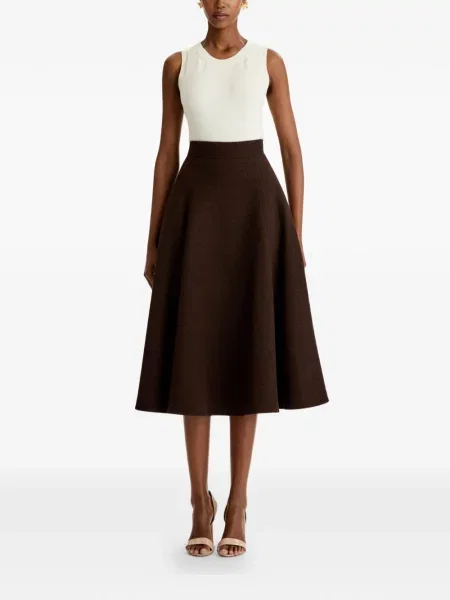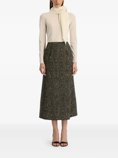 Oscar De La Renta Fustă midi cu talie înaltă de lână până la genunchi