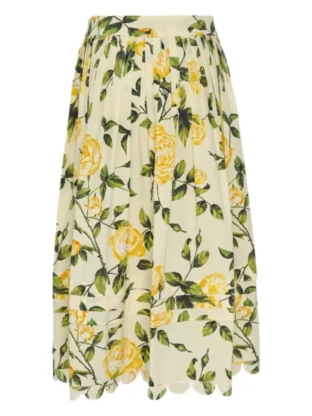 Oscar De La Renta Fustă midi cu model floral până la genunchi din poplin
