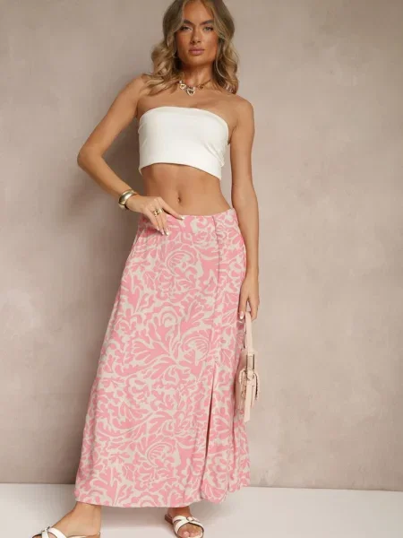 Fucsia Pliată Fustă Maxi Imprimeu Maritha