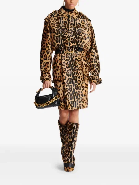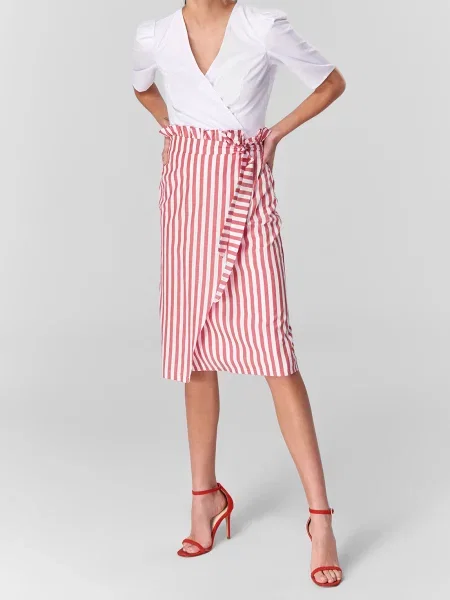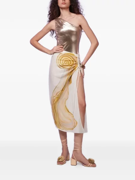 Nour Hammour Fustă midi din piele de căprioară plic