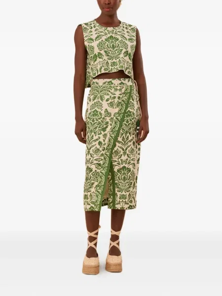 Pierre-louis Mascia Fustă midi cu franjuri cu model floral până la genunchi