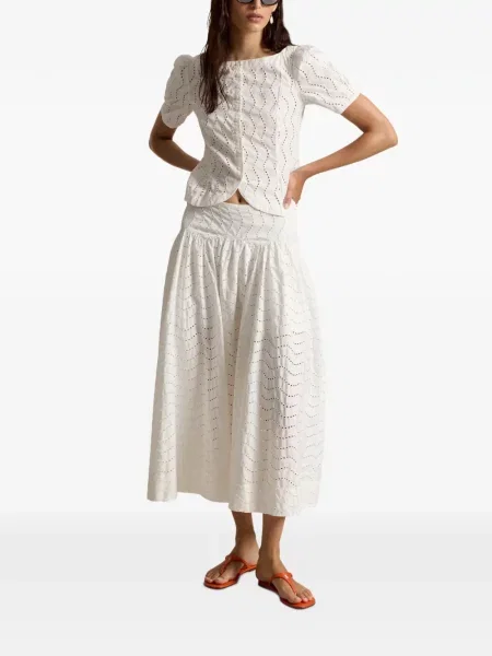 Linia include fuste pentru femei Polo Ralph Lauren care jonglează între minimalismul structural şi accente sportive, lucrate în croieli ce pun în valoare proporţiile. Siluetele variază de la mini la midi, iar pliseurile rămân un motiv frecvent în colecţii, conferind dinamism şi textură ţinutelor.