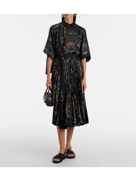 Sacai Fusta plisata cu model floral plisată până la genunchi