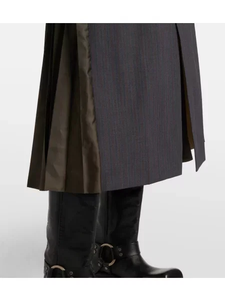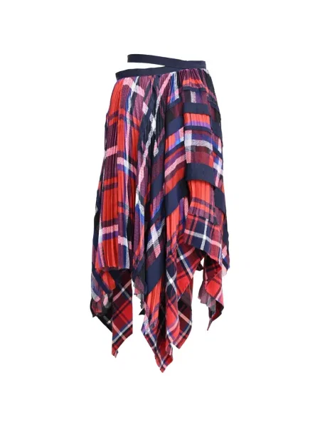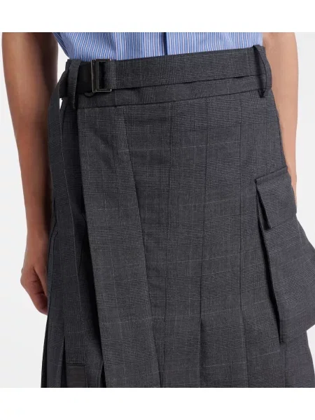 Sacai Fustă midi de lână în carouri până la genunchi