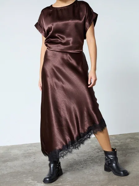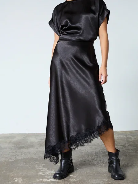 Fusta din satin bine aleasă stă în detalii