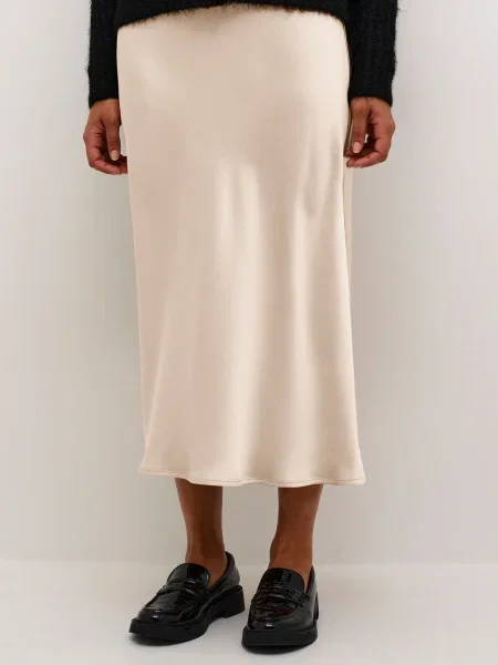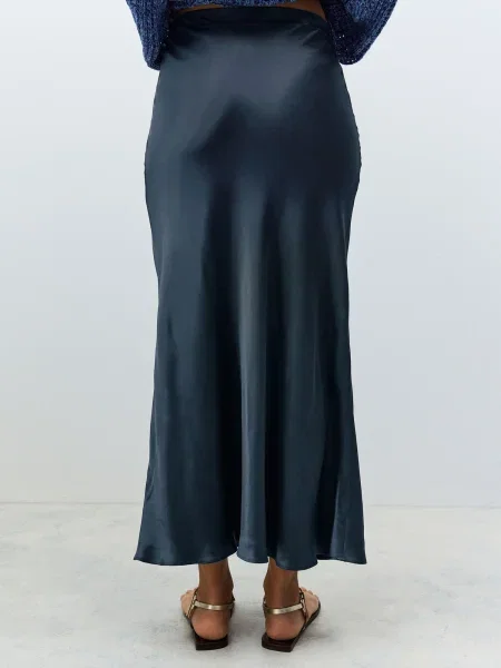 Apoi contează grosimea țesăturii. Un satin prea subțire poate deveni transparent sau poate scoate prea mult în evidență lenjeria și cusăturile. Pentru purtare frecventă, sunt mai practice modelele cu căptușeală, talie elastică bine finisată sau fermoar ascuns. Iar dacă alegi o fustă slip, uită-te atent la tăietura pe bie — ea decide direct cum se așază pe șolduri.