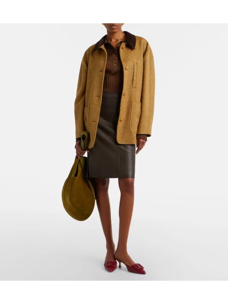 Stouls Fustă midi din piele de căprioară până la genunchi