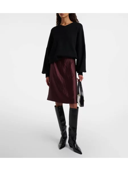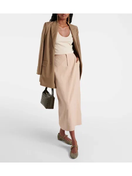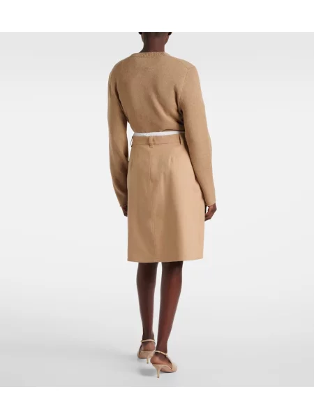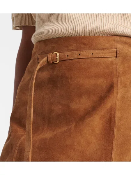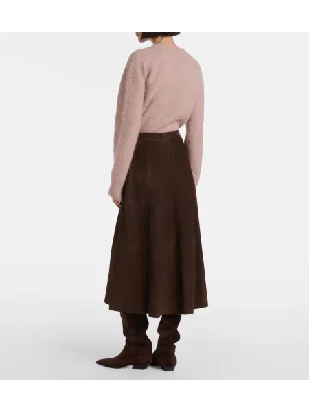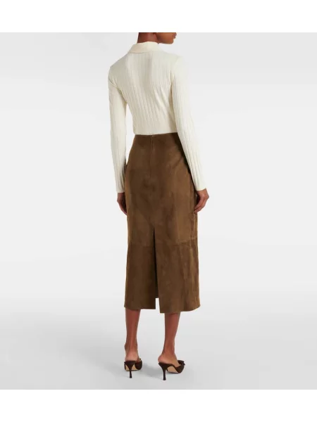 Vince Fustă midi din piele de căprioară până la genunchi
