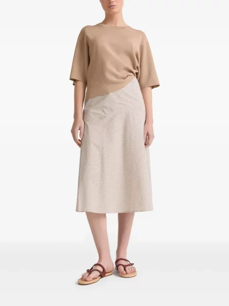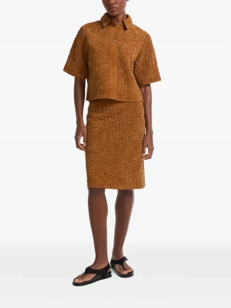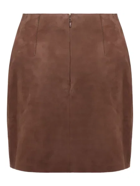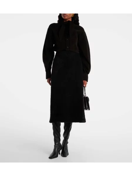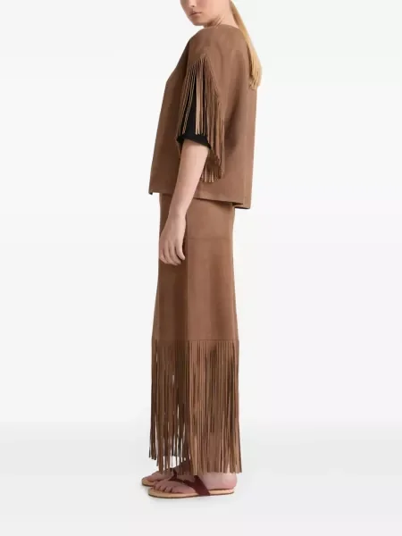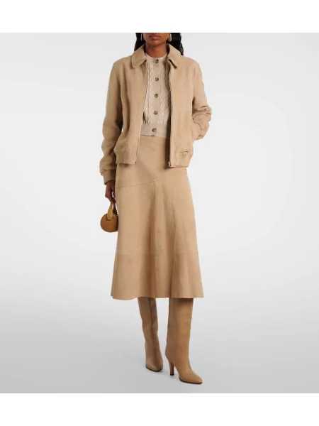 Yves Salomon Fustă midi din piele de căprioară până la genunchi
