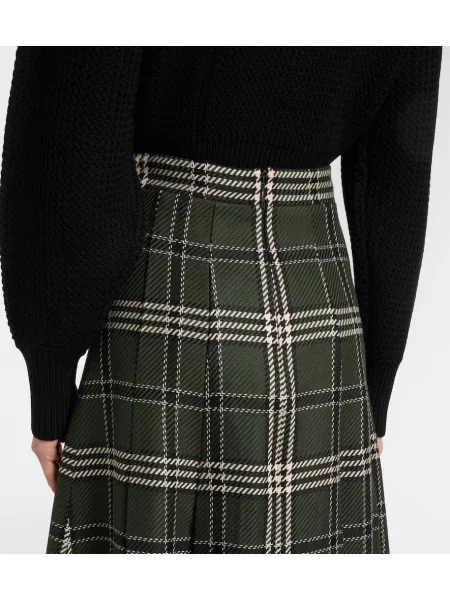 Emilia Wickstead Fustă midi de lână în carouri până la genunchi