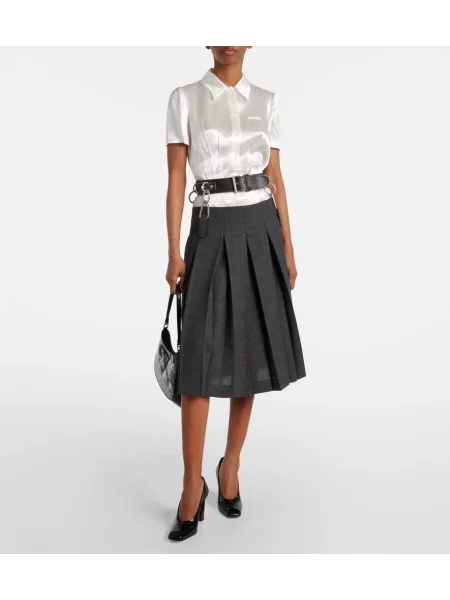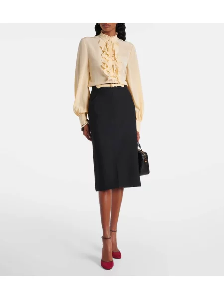 Jardin Des Orangers Fustă midi cu talie înaltă de lână până la genunchi