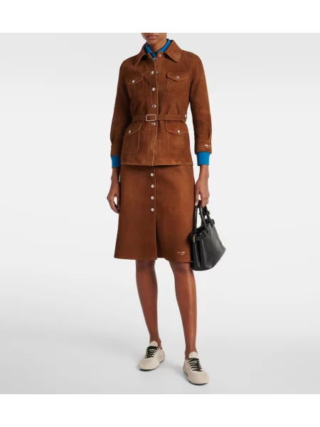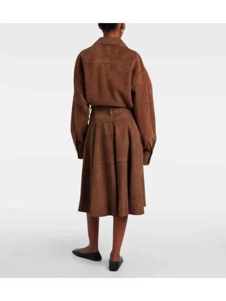 Brunello Cucinelli Fustă midi din piele de căprioară până la genunchi