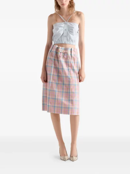 Lisa Marie Fernandez Fustă midi cu funde în carouri până la genunchi