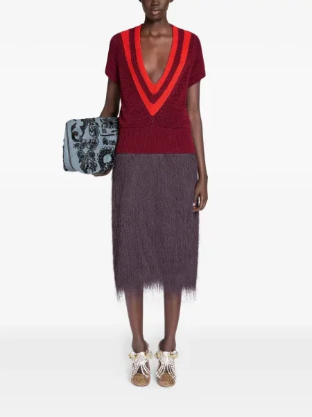 Dries Van Noten Fustă midi de catifea până la genunchi