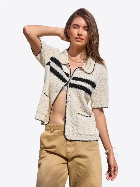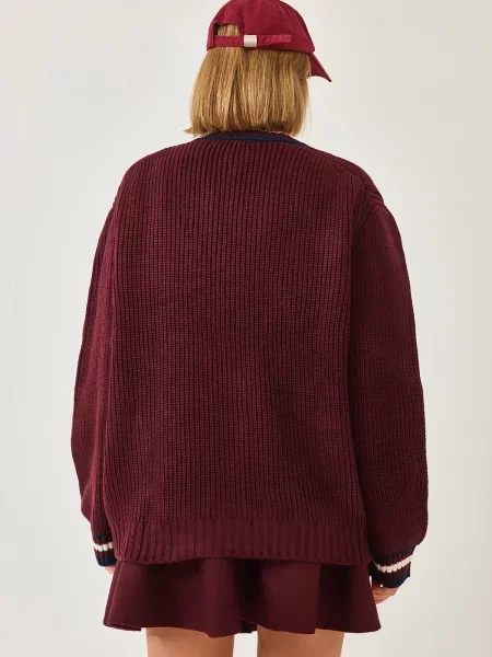 Happiness İstanbul Happiness İstanbul Geacă tricotată crem / roșu vin