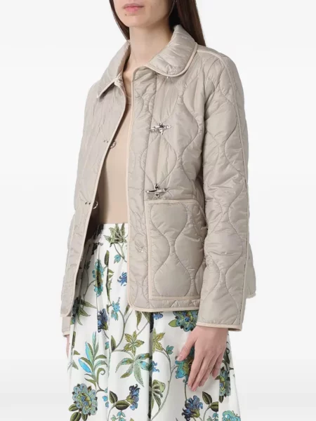 Geci damă Fay acoperă siluete variate, de la croieli scurte la propuneri cu linie sobră, iar decupajele și proporțiile sunt gestionate cu o estetică europeană calmă. Pentru reper vizual, comparați unele linii cu selecțiile de la Moncler, utile pentru orientare în proporții și finisaje.