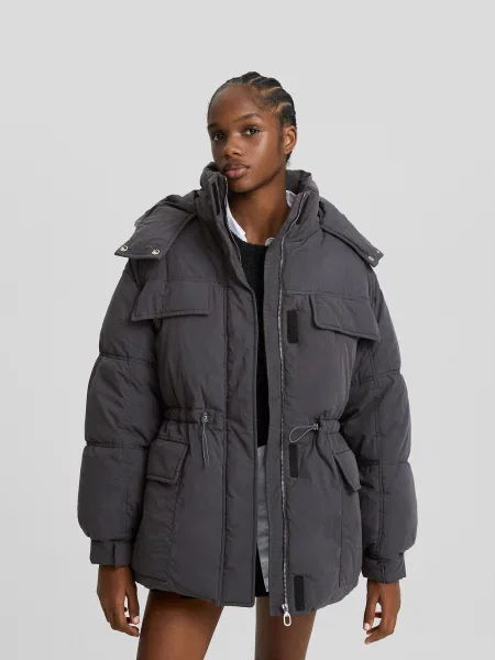 Reserved Geacă de puf cu glugă gri-închis